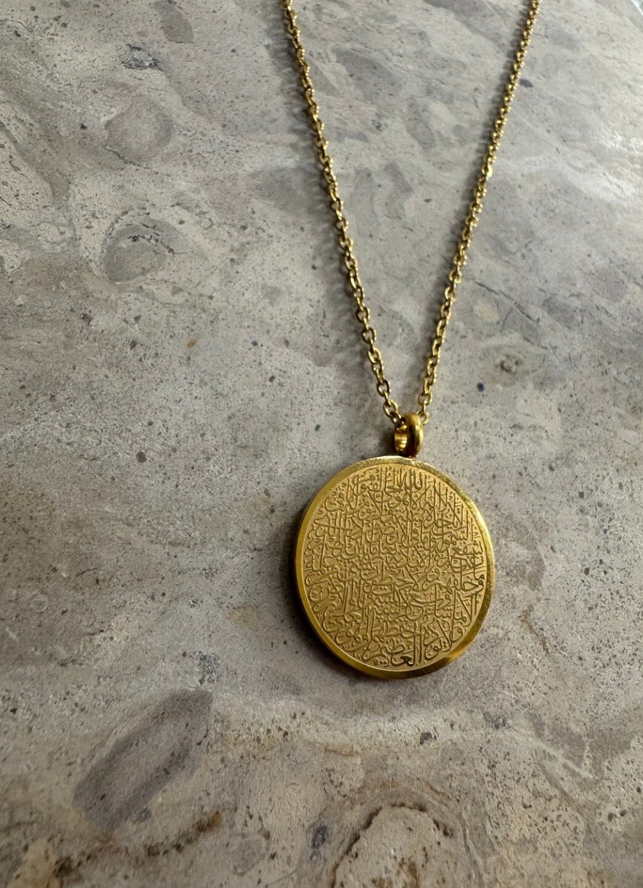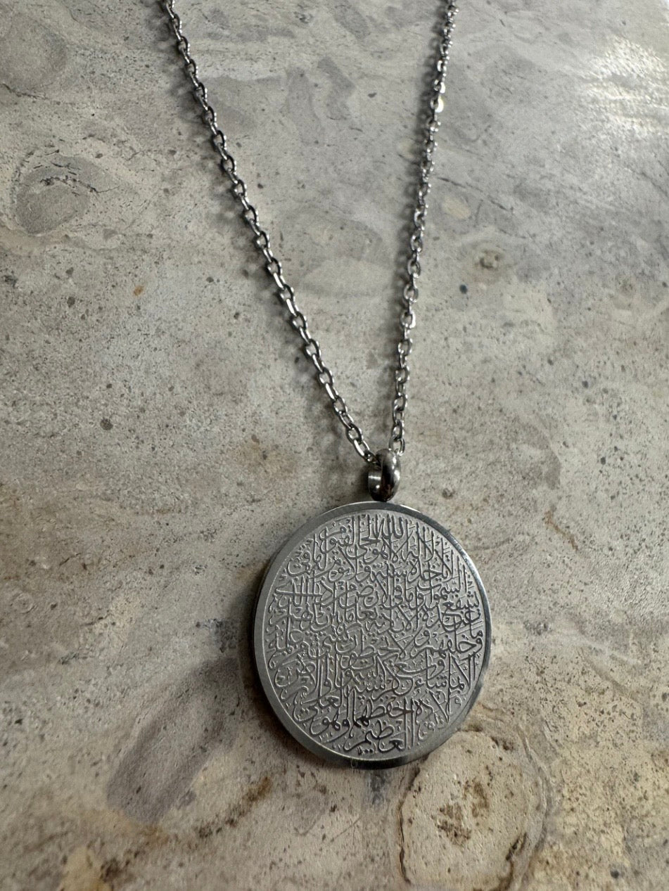 Experience the powerful protection and beauty of our Ayatul Kursi Necklace. With intricate hand-designed calligraphy, this accessory serves as a reminder to recite this verse for countless benefits. Let it be your daily shield against all forms of evil and keep it close to your heart.